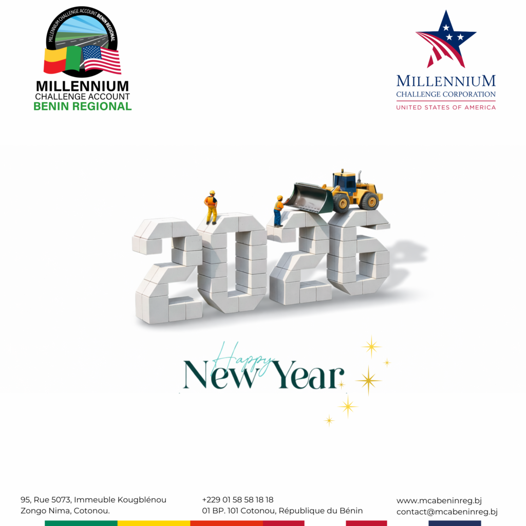 Le Millennium Challenge Account – Bénin Régional (MCABéninRégional) vous souhaite une excellente année 2026. Avec nos salutations chaleureuses, L’équipe du MCA-Bénin Régional